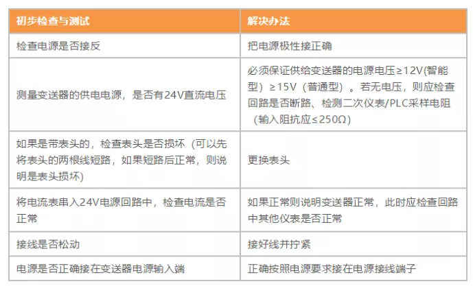 變送器設備本身故障問題