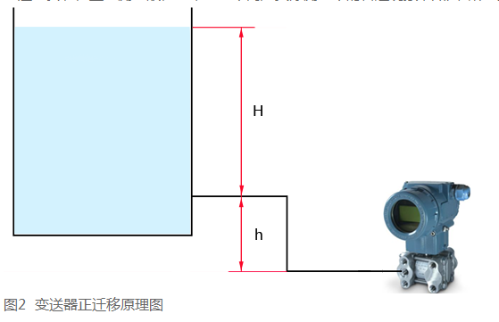 變送器安裝位置與測量液位水平高度不同是實(shí)際測量中的普遍現(xiàn)象,如圖2所示為一種遷移形式。