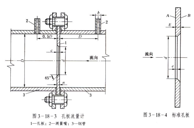 孔板流量計(jì)有孔板、取壓嘴和鋼管組成,安裝過(guò)程中,應(yīng)注意孔板的安裝方向,具體如圖所示。