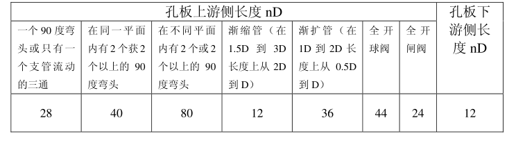 ?。?)孔板上下游所需直管長(zhǎng)度不得小于以下要求: