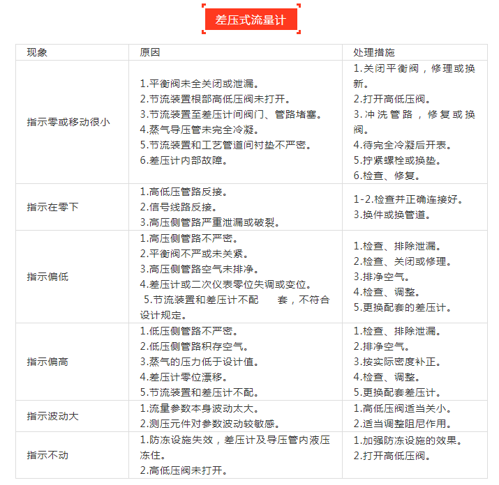 差壓式流量計(jì)出現(xiàn)故障的原因及解決辦法